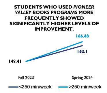 - Students who used PVB programs more often (>250 min/week) made more gains than students who used it less often.